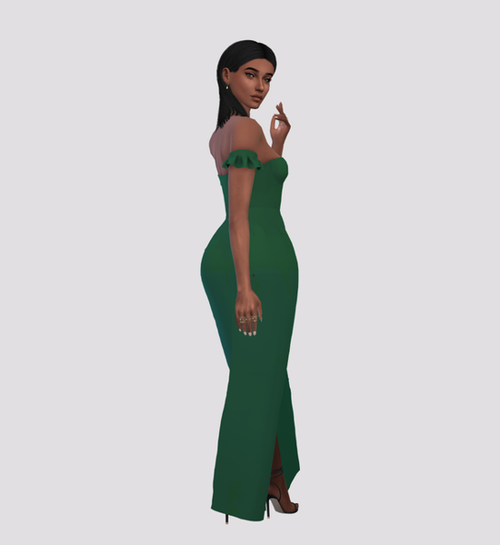 This is a floor length dress with a fitted bodice and a long cut up the leg, with a ruffle detail.· 26 Colors + 17 Patterns· New Mesh by Me· Custom Thumbnail· HQ Mod Compatible