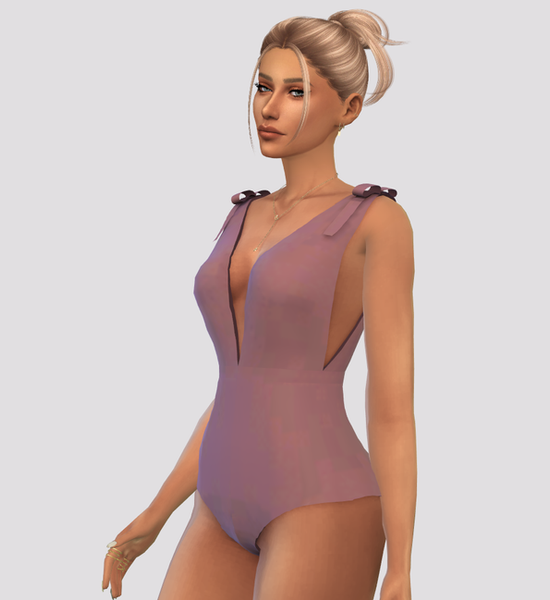 This is a sweet one-piece swimsuit with a plunging V neckline and tie up straps.· 25 Colors· New Mesh by Me· Custom Thumbnail· HQ Mod Compatible