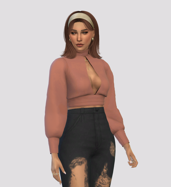 This is a cropped long puffy sleeve top with a turtleneck and a deep middle cut.· 25 Colors and 30 Patterns· New Mesh by Me· Custom Shadow· Custom Thumbnail· HQ Mod Compatible